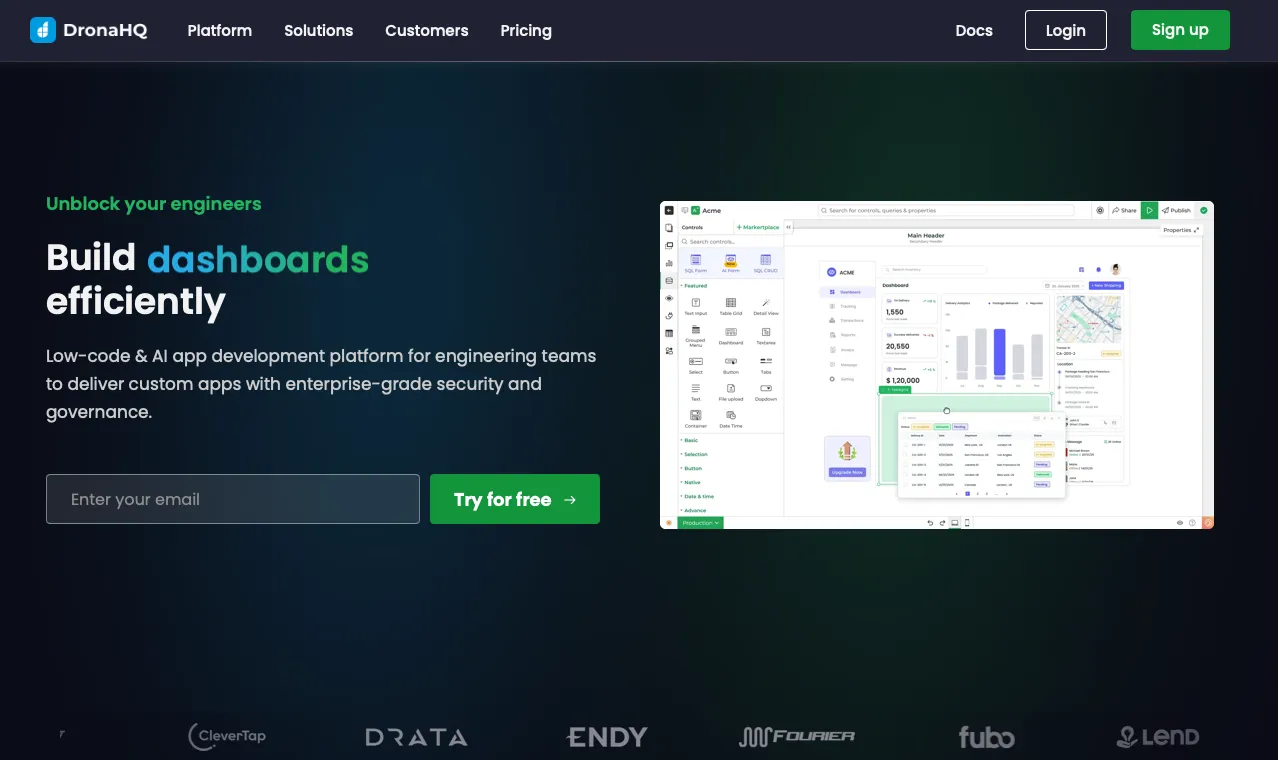 - Enterprise-ready: DronaHQ supports RBAC, audit logs, and SSO for secure internal tool development.