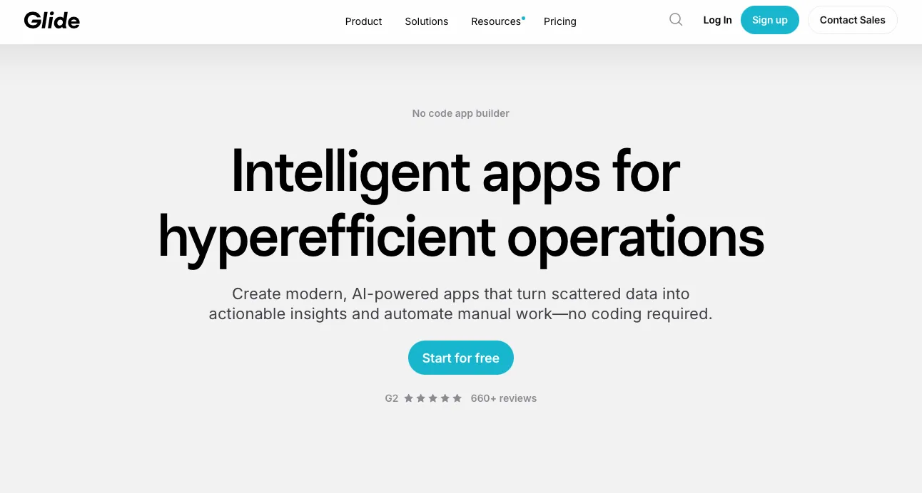 Glide makes it easy to turn spreadsheets into sleek internal apps with little to no coding. It’s built for non-technical teams that want to create simple tools like CRMs, inventory trackers, or internal directories. With a strong focus on visual design and ease of use, Glide is ideal for users who need to build internal tools quickly. It connects directly to Google Sheets, Excel, and Glide Tables, making it especially useful for teams already managing processes in spreadsheets.