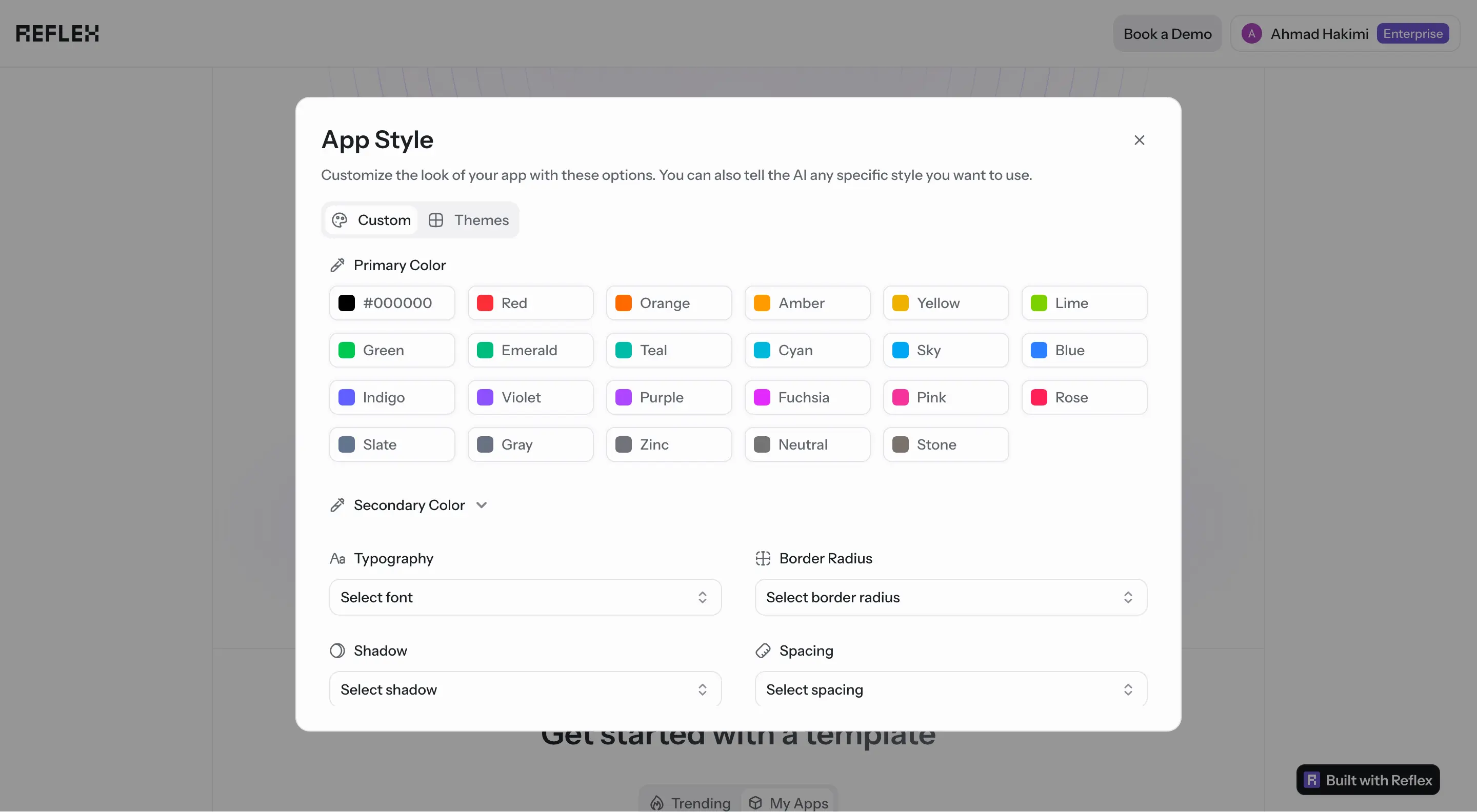 The App Style feature allows you to customize the visual appearance of your AI-generated applications. You can choose from predefined design themes or create custom styling to match your brand and preferences.