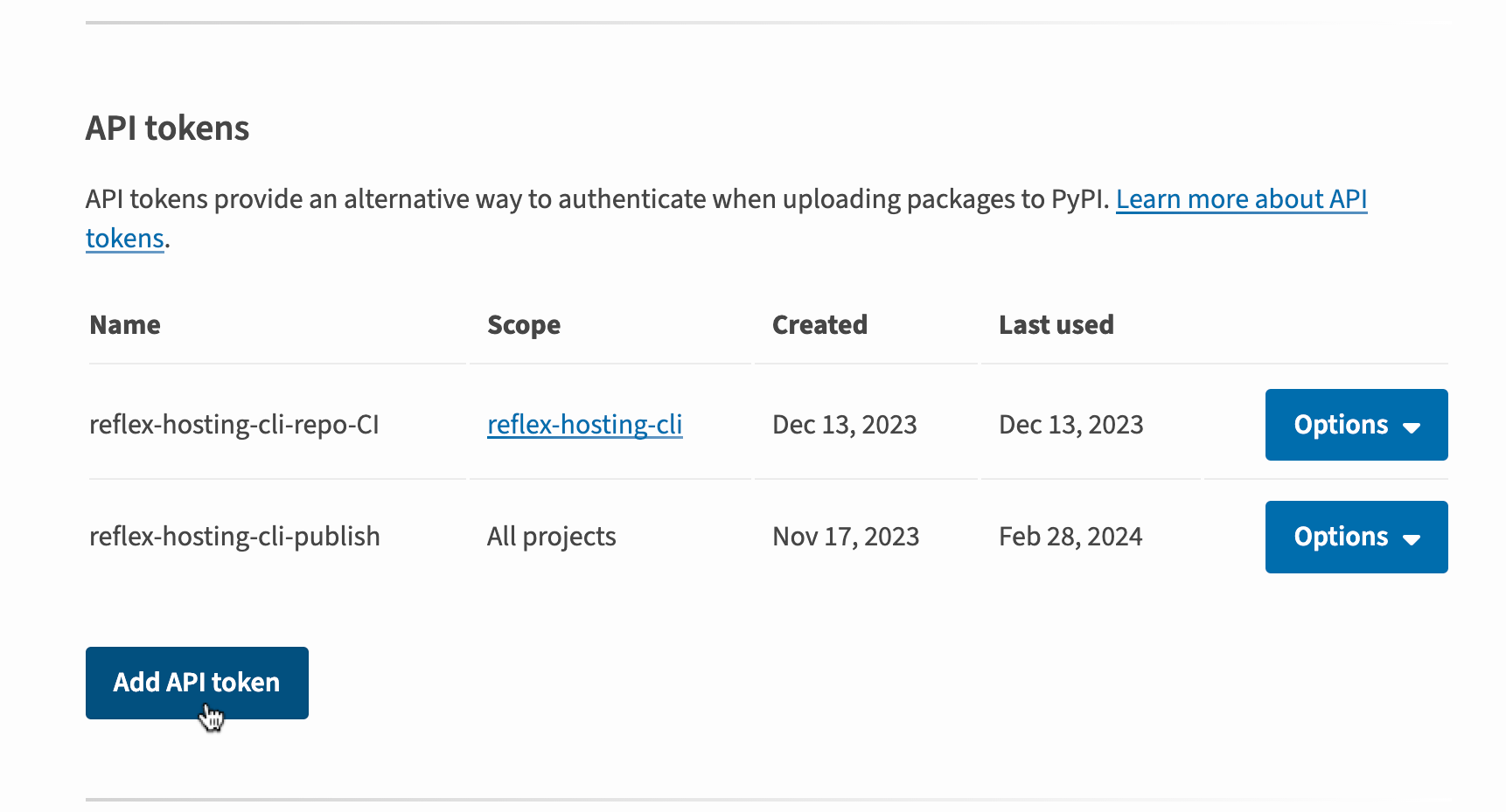 It is straightforward to create accounts and API tokens with PyPI. There is official help on the PyPI website. For a quick reference here, go to the top right corner of the PyPI website and look for the button to register and fill out personal information.