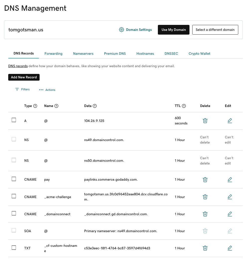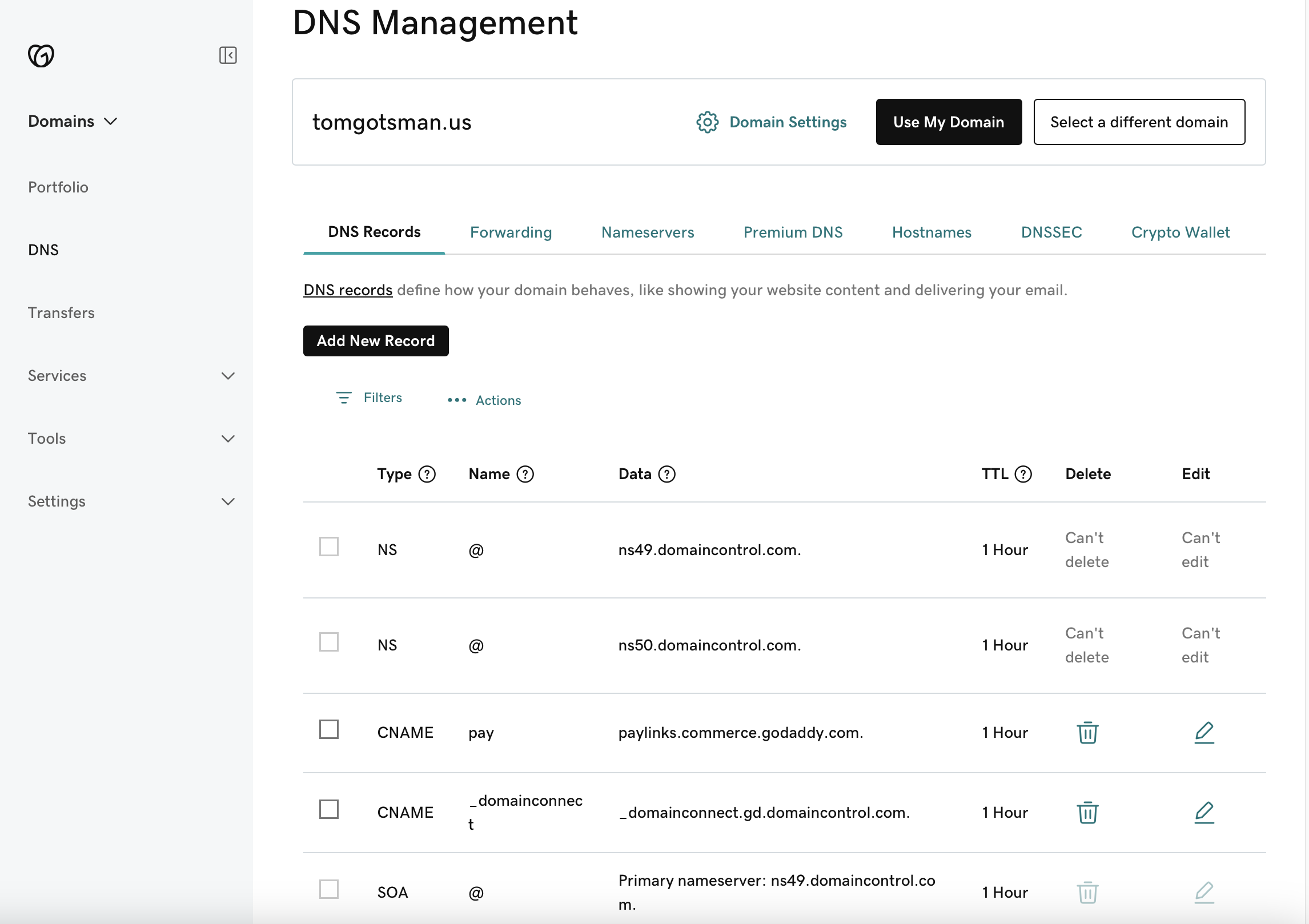 For this tutorial we will use GoDaddy and the example domain tomgotsman.us.